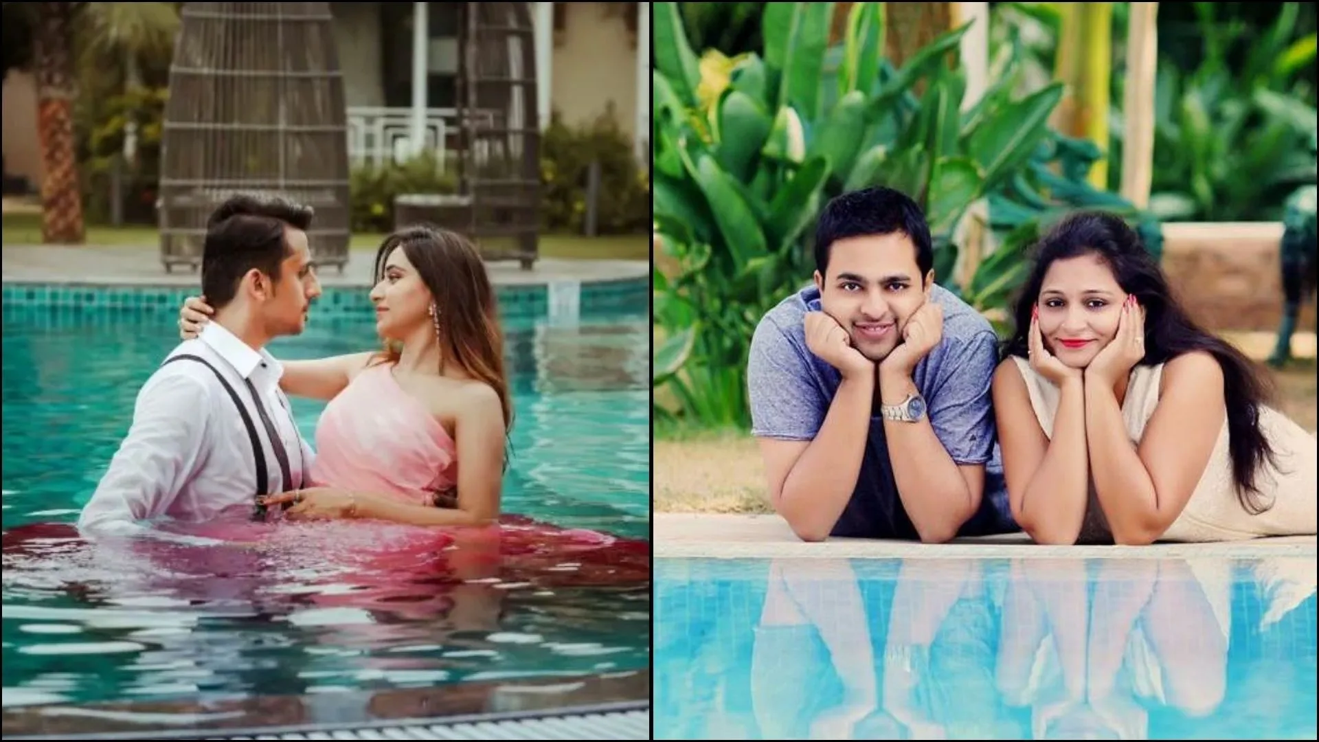 The farmhouse they chose had a beautiful swimming pool surrounded by palm trees. “It was one of our favorite parts,” Aditi smiled. They used the pool for a few romantic shots, legs dipped in the water, playful splashes, and soft reflections.